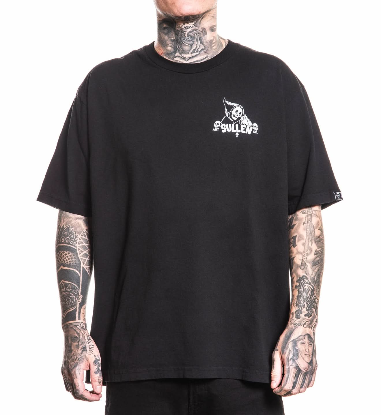 Rubber-hose trouble meets tattoo shop humor. Brooks drops a black-and-grey cartoon scene with our jittery anti-hero in the chair. Big back print framed like an old film still, finished with a small front chest hit to set it off. Printed on our oversized 1 Ton tee—clean fit that's daily ready. Art by @bro_oks_art